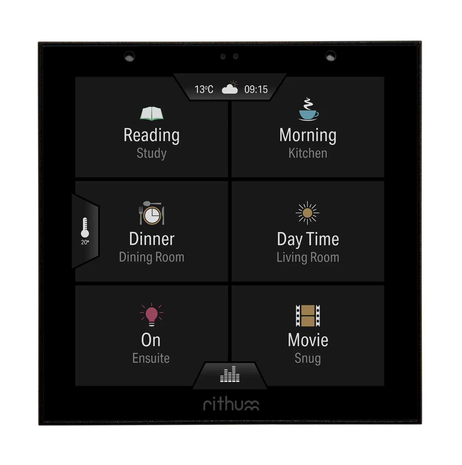Rithum Switch הוא מפסק מבוסס מסך מגע לבית חכם המשלב שליטה בתאורה, באודיו ובקרת האקלים.